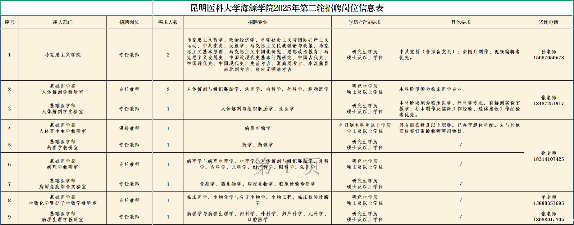 2.专任教师岗位均面向社会招聘银龄教师,条件要求为:具有副高级及以上职称,全日制大学本科及以上学历,具有从事本专业丰富的教学或临床工作经验,已办理退休手续,未与其他高校签订银龄教师聘用协议,具体岗位职责及相关事宜面议。